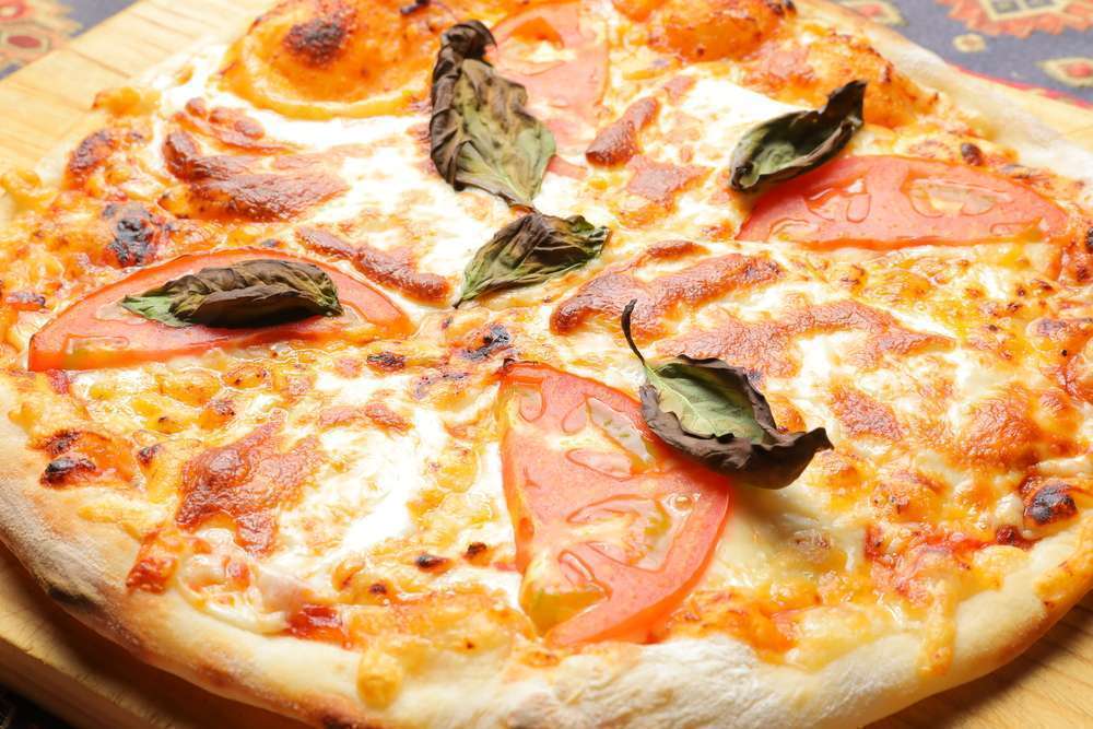 ナポリピッツァの代表です。(バジル、トマト、マヨネーズ、チーズ2種)Representative of Neapolitan pizza. (basil, tomato, mayonnaise, 2 types of cheese)