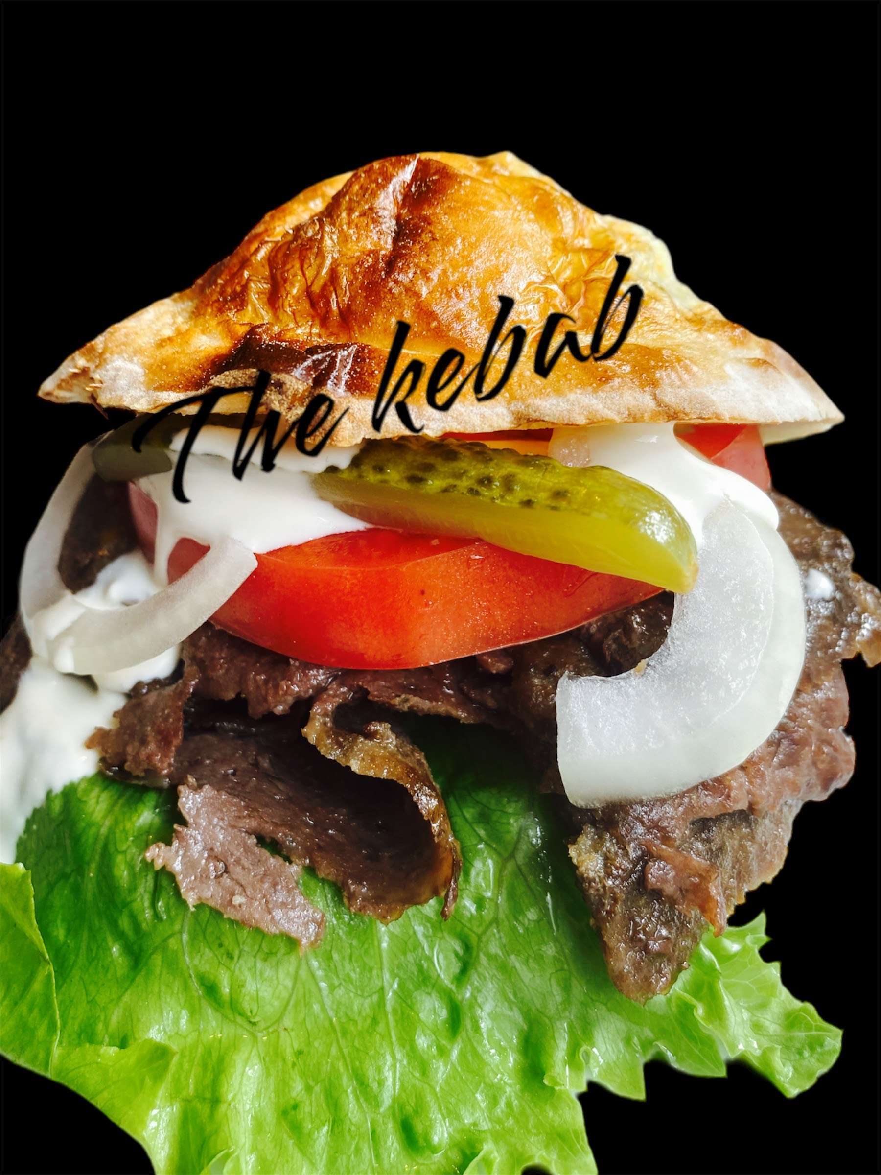 お祭りの屋台でよく見かけるビーフケバブ・レタス・トマト・玉ねぎをピタパンに挟んだファストフード(オリジナルソース)ケバブ専用焼き器で焼いたボリューム満点のケバブです。 A festival food stall staple, beef kebab with lettuce, tomato and onions sandwiched in pita bread, cooked in our exclusive kebab grill. Great volume.