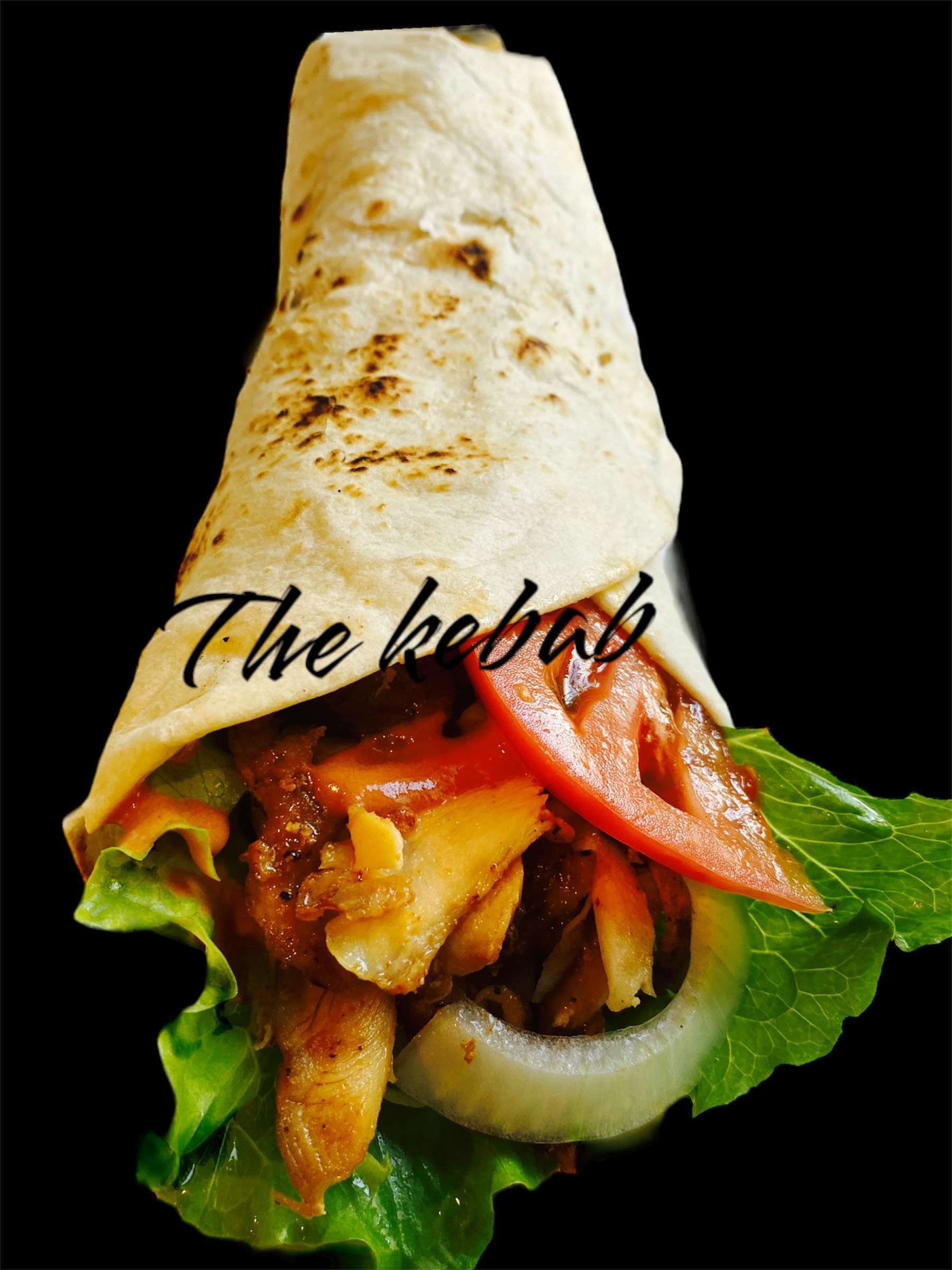 お祭りの屋台でよく見かける(チキン)ケバブ肉・レタス・トマト・玉ねぎをトルティーヤ 生地に挟んだファストフード(オリジナルソース)ボリューム満点のおすすめ一品です。 A festival food stall staple, chicken kebab with lettuce, tomato and onions sandwiched in tortilla dough. Great volume, highly recommended.