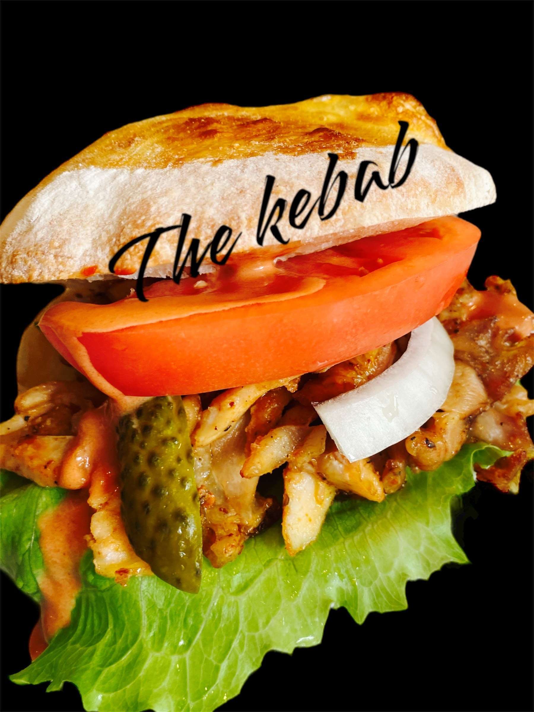 お祭りの屋台でよく見かける(チキン)ケバブ肉・レタス・トマト・玉ねぎをピタパンに挟んだファストフード(オリジナルソース)ボリューム満点のおすすめ一品です。 A festival food stall staple, chicken kebab with lettuce, tomato and onions sandwiched in pita bread. Great volume, highly recommended.