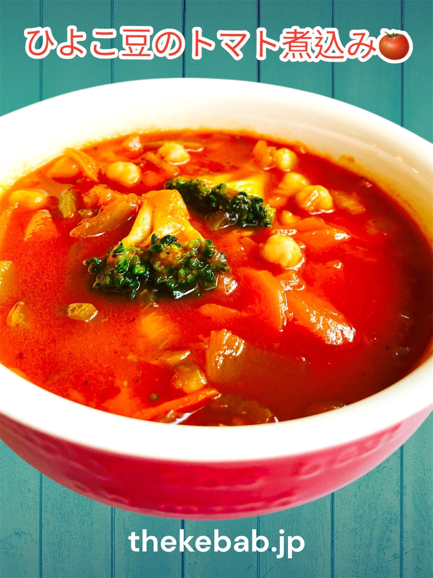 ひよこ豆のトマト野菜煮込みスープ。Chickpea tomato vegetable stew soup.