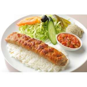 スパイシーなラムのミンチ肉を大きな串に刺しグリルした人気メニューのひとつ。ラム肉が苦手な方でもクセがなく食べやすいケバブのひとつ。rnラムケバブ・ライス250gr・サラダ・ポテトサラダのセットプレートです。One of our popular menu items, spicy minced lamb meat grilled on large skewers. This is one of the kebab that is easy to eat and has no taste even if you don\'t like lamb meat. A set plate of lamb kebab, rice 250gr, salad, spicy tomato appetizer,and potato salad.