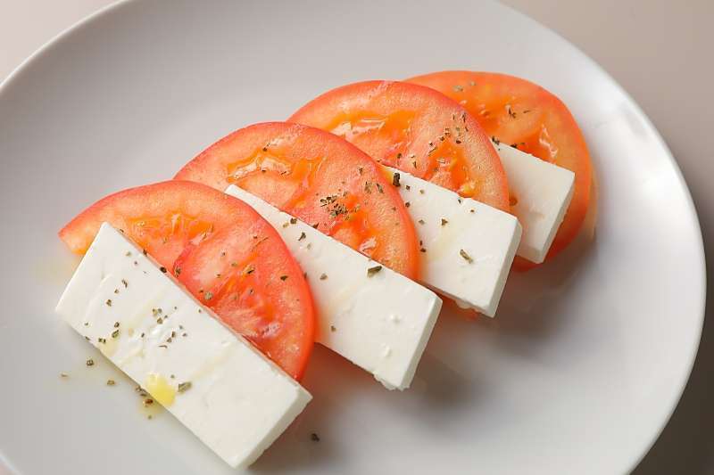 フェタチーズとトマトのサラダフェタチーズとは、ヤギと羊の乳から作られた塩味の強いチーズです。お酒のおつまみにオススメです。Feta and Tomato Salad Feta is a salty cheese made from goat and sheep\'s milk. Recommended as a snack with alcohol.
