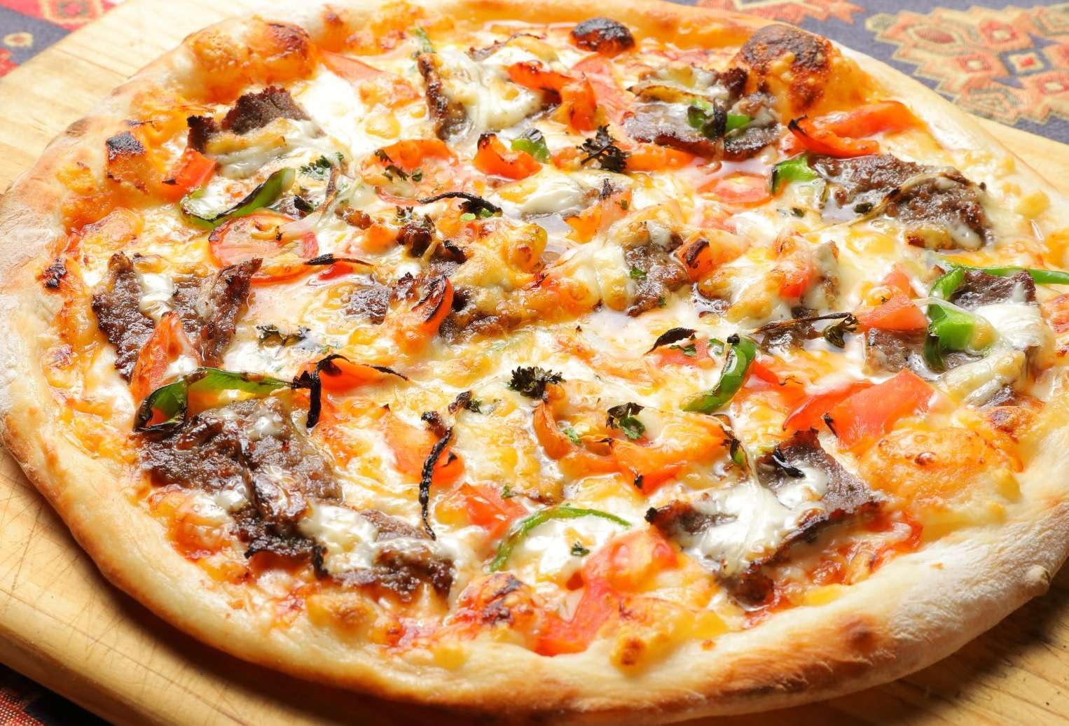 ジューシーなケバブが乗った絶品ピザです。(ケバブビーフ肉、ポテト、トマト、ピーマン、オニオン、マヨネーズ、チーズ2種)A delicious pizza topped with juicy kebabs. (Kebab beef meat, potatoes, tomatoes, green peppers, onions, mayonnaise, 2 types of cheese)